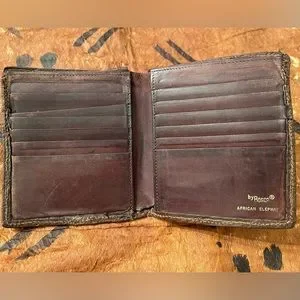 Vintage Bosca Authentic African Elephant Leather Bifold Wallet Dark Brown O/S