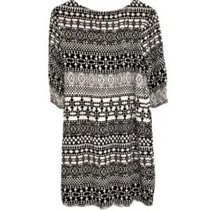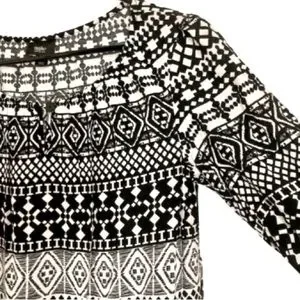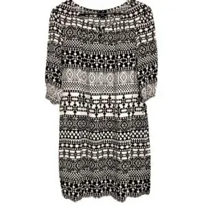 Mossimo Black & White Aztec Pattern Long Sleeve Boat Neck Dress - Size M