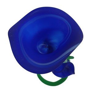 MURANO Cobalt Blue Rose Flower Tulip Art Glass Candle Candlestick Holder Vintage
