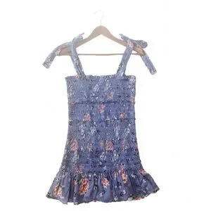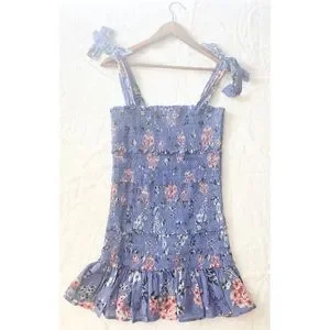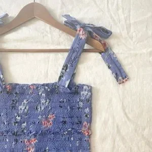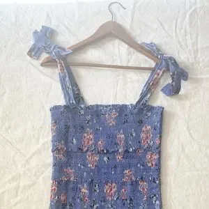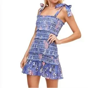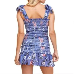 ASTR The Label Anais Floral Smocked Dress Tiered Blue