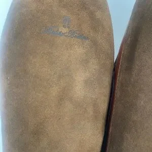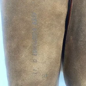 Very nice leather slippers. Men’s size 11. These are in great condition. The only flaw is the black marker on bottom of slipper as pictured.