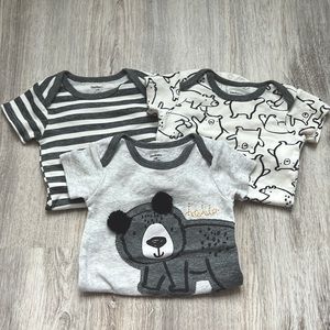 3-6 M Gerber NWOT Onesie Lot Bear and Stripes Gray Neutral Set
