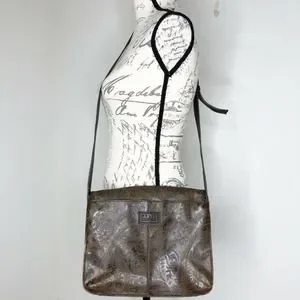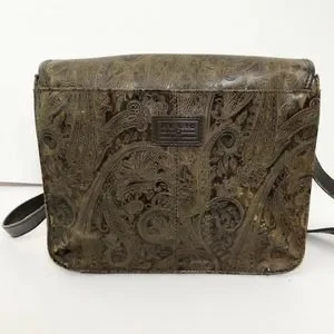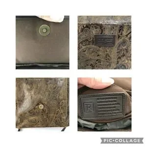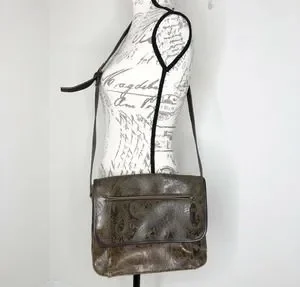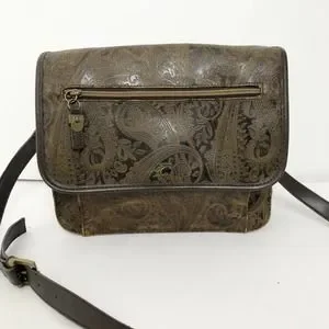Vintage Relic Brown Paisley Tooled Faux Leather Flap Front Crossbody Satchel Bag