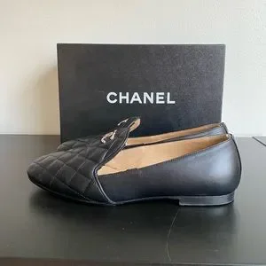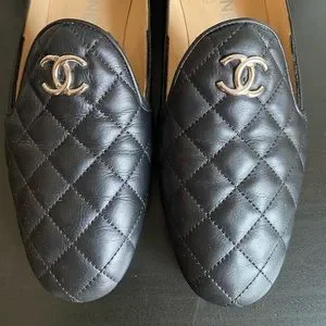 EUC Chanel CC Lambskin Quilted Leather Loafers Flats size 37.5 fits 6.5