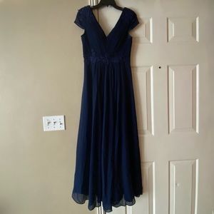 Thrifted this vintage dress, navy blue lace and chiffon in great condition!