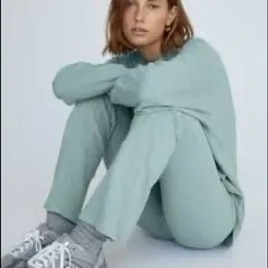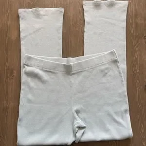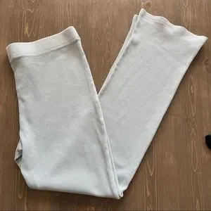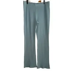 In excellent condition. Get comfy in these organic cotton, waffle knit lounge pants by Wilfred. In a light turquoise color with an elastic waist these are sure to become your favourite lounge wear. These are high-rise kick-flare pants with an elastic waist. They’re made from stretchy, textural waffle-knit fabric made with organic cotton. Garment Dye (Gd) Colours: The unique colour of our garment dye is achieved through a special process — instead of dyeing the fabric, we dye the finished garment for a dimensional, washed-down look and soft feel. Results vary from one piece to the next, so yours is truly one-of-a-kind.