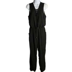 Love Tree Sleeveless Jumpsuit L Black Pockets Elastic Waist Lace Up V Neck