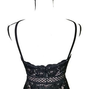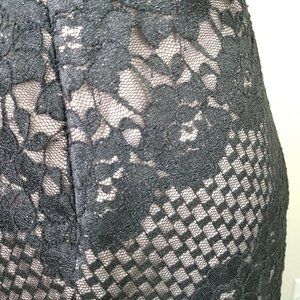 Morgan & Co Floral Black Lace Nude Bodycon Sleeveless Knee Length Dress Size 5