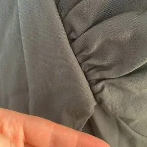 The front features an asymmetrical gathered/ structured detail which was a bit hard to capture in photos but looks great on.