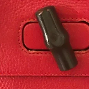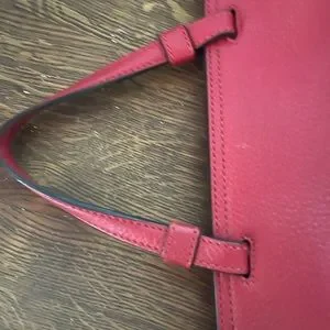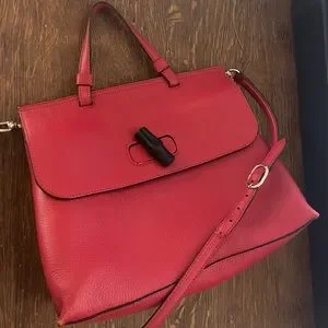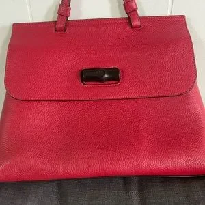 Perfect daily bag! Magnetic sides, bamboo opening clasp, leather outside, inside is in great condition (no rips or stains that I can see) All zippers in working order. Strap is removable so you can wear it as a hand held bag or cross body/shoulder bag. Some scuffing on corners.
