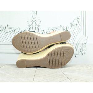 CLARKS Artisan Caslynn Regina Brown Leather Ankle Strap Wedge Sandals Size 7 W