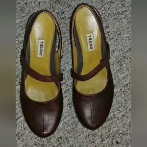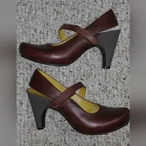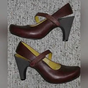 Burgundy Tsubo pumps. 4" heels, velcro strap, nonslip soles, leather footbeds, wide heel straps.