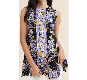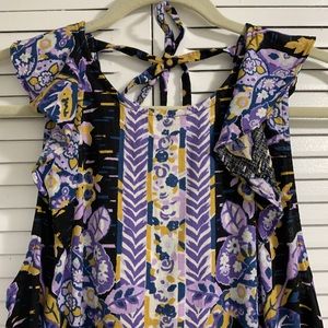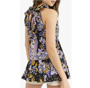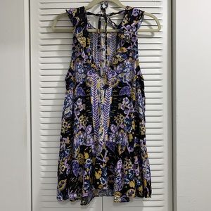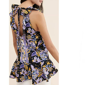 Free People Summer in Tulum Floral Sleeveless Ruffle Tunic Top Blouse, Dark Combo, Size Medium. MSRP $108