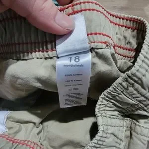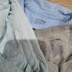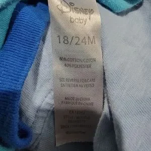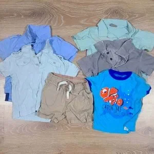 5 summer (short sleeve shirts) and 1 shorts for boys or toddler size 18m to 24m. organic cotton, 100% cotton, Diney and baby Gap. mostly all 100% cotton besides the Disney shirt is a blend. used clothes, washed and dried. Pre-washed no risk of shrinking.