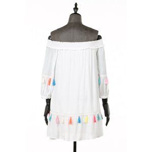 Casual Off The Shoulder Multi-Color Tassels White Dress Super Cute Comfy