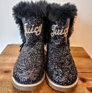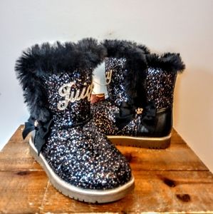 Adorable boots from Juicy Couture, crusted in glitter with faux fur trim. New with tags still attached. Size 2M.
