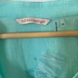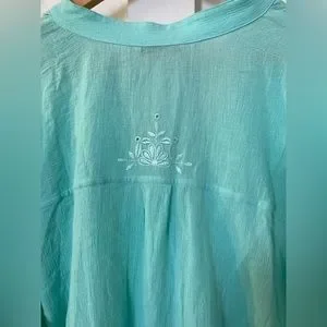Soft surroundings aqua colored button down blouse
