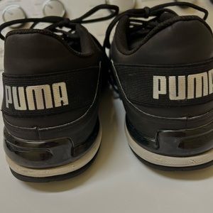 Just like new! Mens size 12 PUMA tennis shoes. Black with silver PUMA on the back and silver puma cat emblem. Very nice, no rips or stains. Grew out of these too fast. Smoke free home 🏡