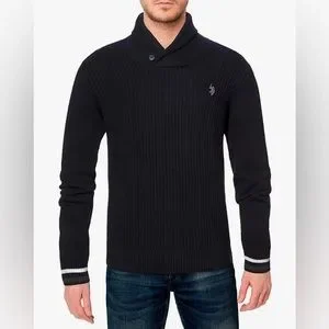 U.S. Polo Assn. Men's Reverse Jersey Shawl Collar Sweater SZ L. The shawl collar elevates the style and can we talk about the form fit 😋.