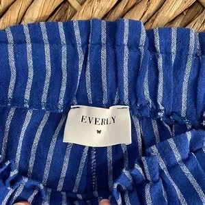Women's Everly Blue & White Pinstripe Cotton Casual High Waist Pocket Shorts, size small