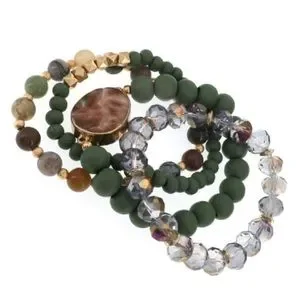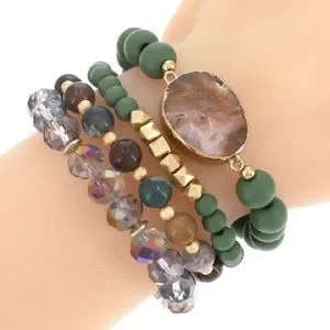 1088-4Pcs Stretch Gemstone Wooden Bracelet-Green