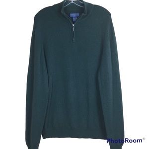 Joseph & Lyman Men's Green Cashmere 1/4-zip Mock-Neck Sweater Pullover Sz L