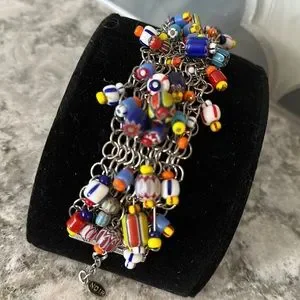 EUC Silver chain metal base Multi colorful beads Fun to wear With dangling beads Lobster clasp closure