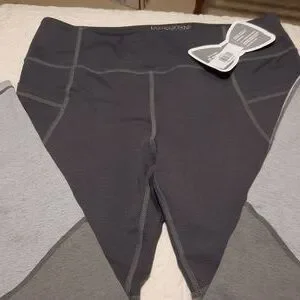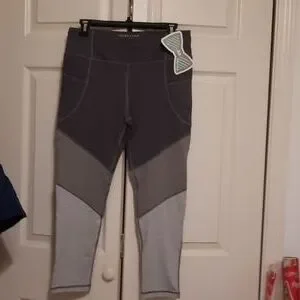 jadelynn brooke.. large. cropped. colorblocked gray. 4 way stretch. side pockets. waist pocket. wide waist band. reflective details. NWT. 1 of 2.. 1 of 2 pairs