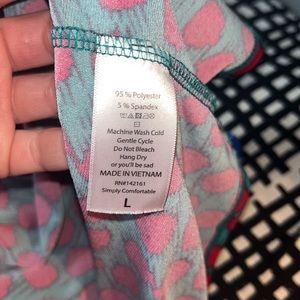 LuLaRose dress 95% Polyester 5% Spandex size large “hang dry or you’ll be sad”. RN #142161