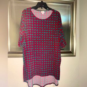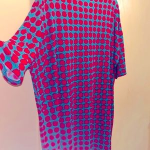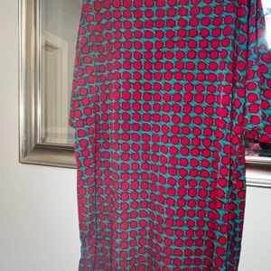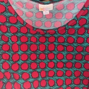 LuLaRoe dark red circles with Teal Maroon & Teal Women’s large tee style dress