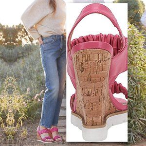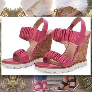 PIEPIEBUY Flirty Ruched Faux Leather High Cork Wedge Sandals NEW IN BOX!