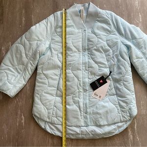 NWT Lululemon Quilted Light Insulation Jacket in Powder Blue. For when the weather can't make up its mind. This jacket is your just-right layer of warmth with lightweight PrimaLoft insulation and fabric that repels the rain. Water-Repellent, Ripstop Fabric, Base Warmth. Water-repellent. PrimaLoft insulation is warm, even when wet. Featuring our lightest weight insulation and versatile layering for changing weather and active living. Relaxed Fit, Bum-Covering Length: Relaxed fit feels roomy and can be worn over larger layers. Size down if you prefer a slimmer fit. Zippered exterior pockets with a hidden phone sleeve. Snap-button front.