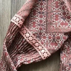 Knox Rose Cottage Core Pleated Style Floral Long Sleeve Blouse Women’s Sz. M. See pictures for measurements tie neckline. Stretchy material. Peasant style. Grannycore