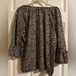 NWOT Michael Kors black and tan animal print top. Round neck, 3/4 bell sleeve. Lightweight, soft material. Never been worn, cute top!