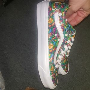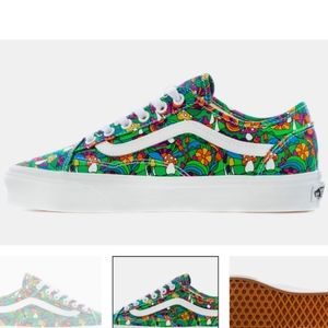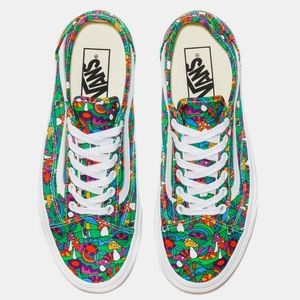 The Old Skool Tapered, a deconstructed version of our iconic sidestripe shoe, features a more slender and fitted silhouette than the traditional Old Skool. Along with sturdy canvas uppers featuring a bold mushroom print, this classic low-top style comes equipped with signature rubber waffle outsoles.