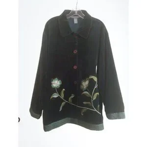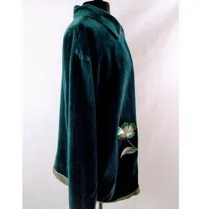 Jessica Holbrook Womens Jacket Easy care Green Velvet Metallic Trim