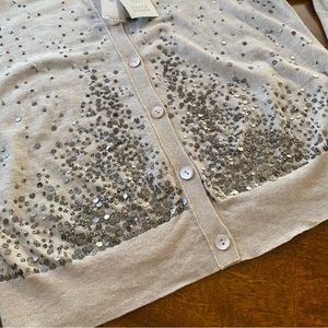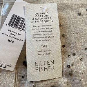 Eileen Fisher organic cotton cashmere blend sequin cardigan. 3/4 sleeves. Color: Oatmeal.