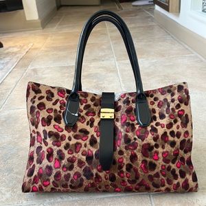 FURLA animal print on fur handbag. NWOT