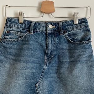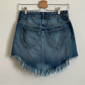We The Free Blue Denim Frayed Hem Distressed 100% Cotton Mini Skirt Size 25