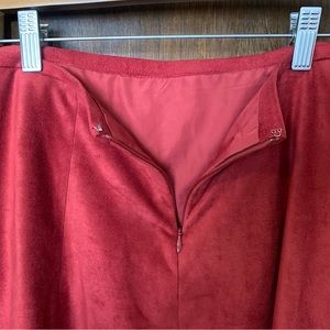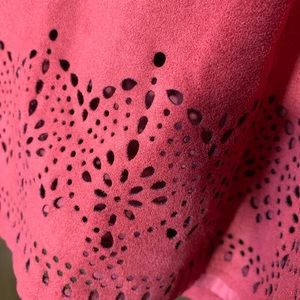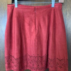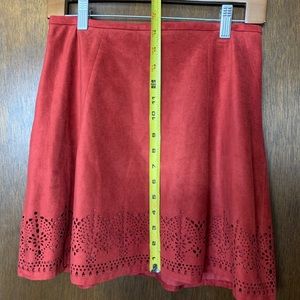 Zero stretch. Soft suede-like material with cute cut-out detail around bottom. Zipper in back. Lined. Only wore a handful of times! Open to reasonable offers!