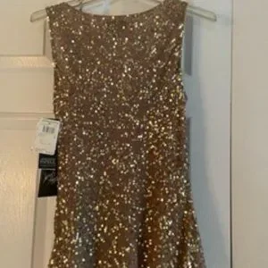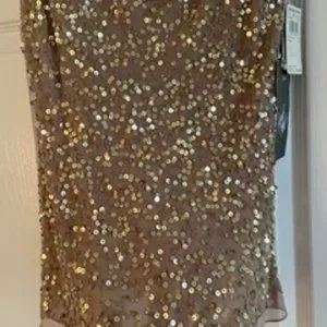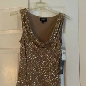 Sleeveless with a scoop neck and fabric gathering sequined blouse. Never been worn!