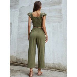 Ruffle Trim Twist Top With Pants