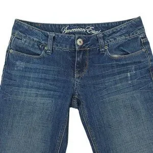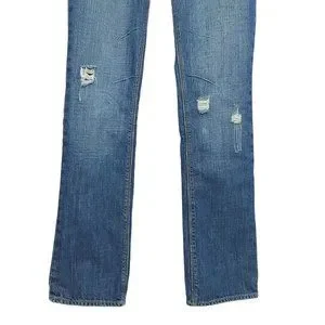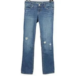 American Eagle 77 Straight Denim Jeans Womens Size 2R Distressed Medium Wash