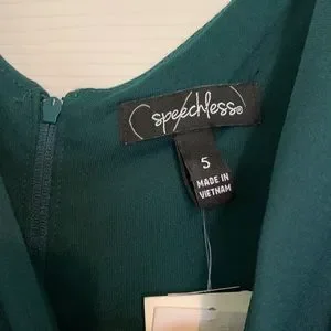Speechless Macy Emerald Green Silver Cutout Midriff Party Fit Flare Dress Padded