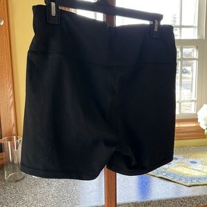 Black cotton stretch materials. Mid thigh length. Wide high waist.
