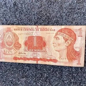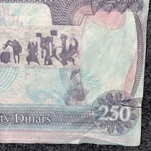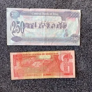 Iraq Circulated 250 Dinar Bank Note and a Circulated Honduran Paper Money Bill