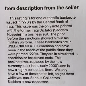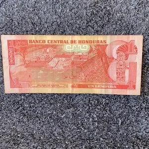 This listing is for one authentic bank note by the Central Bank of Iraq and a circulated Honduras 1 Lempira Currency Paper money bill. This issue has the former Dictator Saddam Hussein in a business suit. Other issues he was in his military uniform. These banknotes are in USED CIRCULATED condition. They were in the hands of the public since they were printed in the 1990’s. They are in circulated condition with some frayed ends. Iraq bill has small tear. See photo. This banknote was replaced in early 2000’s. It is highly collectible now. As we know Saddam is now deceased.