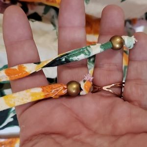 Tied front elastic cuffs and waist.