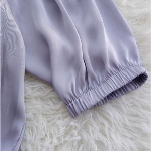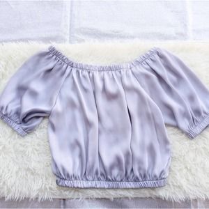 Such a chic crop top off the shoulder or can be worn regular - round neckline - elastic hem in neckline, waist and sleeves - silver satin color - pullover - 100% polyester