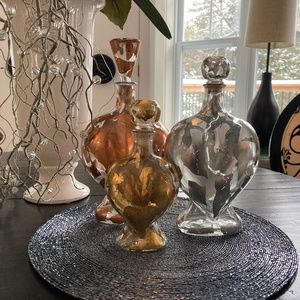 Heart glass bottles (Italy) with Gold/Bronze/Silver quality leafing work (inside).